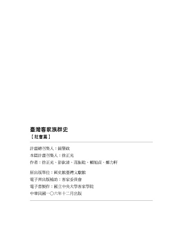 ၽᝄ܄ૄ໊̦gٟึᇐ ፠ϛࠊ ᘬjၽᝄ܈؇ ኪዝjͭʕ͍ɽኪዝ̦Ӻה၂ɻ ഹЪjԳ̆Ӏໝʘ֚ૄၾୄ٠{ၽᝄ܄ٟึࡈࣩӺ1999 ഃሞ˖ ቍɢ ᘬjၽ̹̏ ኪዝj؇ऎɽኪٟึኪӺה၂ɻ ዝjʕ̯Ӻ৫͏ૄኪӺהӺпଣ 臺灣客家族群史 【社會篇】 ࠇᐼ̜ණɛjᒤၴ݁ ͉ᇐࠇ̜ණɛjࢱ͍Έ Ъ٫jࢱ͍Έeుಝeߪࣈ৻e፠ϛࠊeቍɢ ࡡ̈وఊЗj̦ၽᝄ˖ᘠ ཥɿࣣ̈وпj܄։ࡰึ ཥɿࣣႡЪjͭʕ̯ɽኪ܄ኪ৫ ʕശ͏ɓ´ʬϋɤɚ˜̈و 440