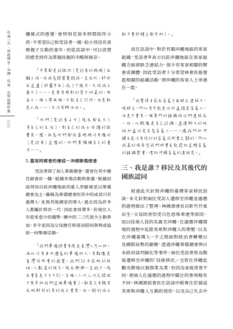 %u5f4c%u88dc%u5f0f%u7684%u611f%u89ba%uff0c%u6703%u7279%u5225%u82b1%u5f88%u591a%u6642%u9593%u966a%u4f34%u5c0f%u5b69%uff0c%u4e0d%u5e0c%u671b%u81ea%u5df1%u548c%u53d7%u8a2a%u8005%u4e00%u6a23%uff0c%u7d66%u5c0f%u5b69%u6c92%u6709%u751a%u9ebc%u89aa%u5b50%u4e92%u52d5%u7684%u7ae5%u5e74%u3002%u4f46%u5f9e%u8a2a%u8ac7%u4e2d%uff0c%u53ef%u4ee5%u6e05%u695a%u7684%u611f%u53d7%u5230%u4f5c%u70ba%u55ae%u89aa%u6bcd%u89aa%u7684%u8f9b%u9178%u8207%u7121%u5948%u3002%u300c%u5e73%u5e38%u90fd%u662f%u6211%u8ddf%u5979%uff08%u53d7%u8a2a%u8005%u7684%u5abd%u5abd%uff09%u5728%u9867%u5c0f%u5b69%uff0c%u4f46%u56e0%u70ba%u7d93%u71df%u9910%u9928%u6211%u4e00%u76f4%u5728%u5fd9%uff0c%u7d42%u65bc%u5728%u9019%u908a%uff08%u90a3%u9738%u5e02%u5340%uff09%u6df7%u4e86%u5341%u5e7e%u5e74%uff0c%u4e5f%u628a%u5b69%u5b50%u990a%u5927%u4e86%u2026%u2026%uff0c%u662f%u8981%u6709%u76f8%u5c0d%u7684%u52aa%u529b%u554a%u771f%u7684%uff0c%u800c%u4e14%u53c8%u4e00%u500b%u4eba%u5e36%u5169%u500b%uff0c%u53ea%u80fd%u81ea%u5df1%u6253%u62fc%uff0c%u4f46%u662f%u5c31%u662f%u5c0f%u5b69%u2026%u2026%uff0c%u4e5f%u6c92%u6709%u8fa6%u6cd5%u5566%u3002%u300d%u300c%u4ed6%u5011%uff08%u53d7%u8a2a%u8005%u5b50%u5973%uff09%u73fe%u5728%u90fd%u9577%u5927%u4e86%u6709%u81ea%u5df1%u7684%u751f%u6d3b%u4e86%uff0c%u5c0d%u81ea%u5df1%u7684%u5b69%u5b50%u4fdd%u8b77%u7684%u8ddf%u5bf6%u8c9d%u4e00%u6a23%uff0c%u56e0%u70ba%u4ed6%u5011%u90fd%u8aaa%u7576%u5abd%u5abd%u6c92%u6709%u50cf%u4f60%uff08%u53d7%u8a2a%u8005%uff09%u9019%u6a23%u7684%uff0c%u4ed6%u5011%u8981%u5f4c%u88dc%u81ea%u5df1%u7684%u7ae5%u5e74%u2026%u2026%u300d%u53d7%u8a2a%u8005%u9664%u4e86%u52a0%u5165%u83ef%u50d1%u7e3d%u6703%uff0c%u9084%u66fe%u5728%u5176%u4e2d%u64d4%u4efb%u526f%u6703%u9577%u4e00%u8077%uff0c%u7d44%u7e54%u591a%u5834%u6d3b%u52d5%u8207%u6703%u8b70%uff0c%u6839%u64da%u8a2a%u8ac7%u5f97%u77e5%u76ee%u524d%u6c96%u7e69%u5730%u5340%u7684%u81fa%u4eba%u4e32%u806f%u4fbf%u662f%u4ee5%u83ef%u50d1%u7e3d%u6703%u70ba%u4e3b%uff0c%u96d6%u7a31%u70ba%u83ef%u50d1%u7e3d%u6703%u4f46%u5176%u4e2d%u7684%u6210%u54e1%u53ea%u6709%u81fa%u7063%u4eba%uff0c%u4e26%u7121%u5176%u4ed6%u570b%u5bb6%u7684%u83ef%u4eba%u3002%u904e%u53bb%u56e0%u70ba%u8a31%u591a%u4eba%u90fd%u5c6c%u65bc%u79fb%u6c11%u4e00%u4ee3%uff0c%u56e0%u6b64%u6703%u54e1%u773e%u591a%uff0c%u4f46%u73fe%u5728%u4eba%u6709%u6108%u4f86%u6108%u5c11%u7684%u8da8%u52e2%uff0c%u5718%u4e2d%u7684%u4e8c%u4e09%u4ee3%u5f88%u5c11%u4e3b%u52d5%u53c3%u52a0%uff0c%u591a%u534a%u662f%u56e0%u70ba%u7236%u6bcd%u64d4%u4efb%u5e79%u90e8%u800c%u966a%u540c%u53c3%u8207%u6216%u5354%u52a9%u4e00%u540c%u8209%u8fa6%u6d3b%u52d5%u3002%u300c%u6211%u5011%u83ef%u50d1%u7e3d%u6703%u6709%u9650%u5b9a%u81fa%u7063%u4eba%u53ef%u4ee5%u52a0%uff0c%u56e0%u6b64%u6c92%u6709%u5176%u4ed6%u570b%u5bb6%u7684%u83ef%u50d1%u52a0%u5165%uff0c%u6709%u9ede%u50cf%u662f%u81fa%u7063%u540c%u9109%u6703%u7684%u611f%u89ba%u3002%u6211%u5011 20%u5e74%u524d%u505a%u7684%u6642%u5019%uff0c%u4eba%u6578%u771f%u7684%u5f88%u591a%uff0c%u73fe%u5728%u6f38%u6f38%u4e00%u76f4%u6e1b%u5c11%uff0c%u73fe%u5728%u6703%u54e1%u5dee%u4e0d%u591a%u4e0d%u5230%u4e00%u767e%u500b%uff0c%u4e8c%u4ee3%u4e09%u4ee3%u5df2%u7d93%u5f88%u5c11%u4f86%u53c3%u52a0%u6211%u5011%u9019%u500b%u83ef%u50d1%u6703%u4e86%uff0c%u5c31%u662f%u7236%u6bcd%u89aa%u6709%u5728%u505a%u5e79%u90e8%u7684%u6709%u7684%u5b69%u5b50%u6703%u4f86%uff0c%u4f46%u4e00%u822c%u7684%u5b69%u5b50%u5c31%u4e0d%u6703%u90a3%u7a2e%u4e3b%u52d5%u53c3%u52a0%u4e86%u3002%u300d%u800c%u5728%u8a2a%u8ac7%u4e2d%uff0c%u5c0d%u65bc%u6709%u95dc%u6c96%u7e69%u5730%u5340%u7684%u5ba2%u5bb6%u7d44%u7e54%uff0c%u53d7%u8a2a%u8005B%u8868%u793a%u76ee%u524d%u6c96%u7e69%u5730%u5340%u5728%u5ba2%u5bb6%u7d44%u7e54%u65b9%u9762%u537b%u7f3a%u4e4f%u9023%u7d50%u529b%uff0c%u5f88%u5c11%u6709%u5ba2%u5bb6%u76f8%u95dc%u7684%u805a%u6703%u6216%u5718%u9ad4%uff0c%u56e0%u6b64%u53d7%u8a2a%u8005%u5341%u5206%u5e0c%u671b%u6797%u6703%u9577%u80fd%u767c%u8d77%u76f8%u95dc%u7684%u7d44%u7e54%u6d3b%u52d5%uff0c%u5c07%u6c96%u7e69%u7684%u5ba2%u5bb6%u4eba%u58eb%u4e32%u9023%u5728%u4e00%u8d77%u3002 %u300c%u6211%u89ba%u5f97%u76ee%u524d%u5728%u5ba2%u5bb6%u65b9%u9762%u7f3a%u4e4f%u9023%u7d50%u529b%uff0c%u5f88%u7f3a%u4e4f%uff0c%u6240%u4ee5%u6709%u53ef%u80fd%u662f%u4f60%u77e5%u9053%u8ab0%u662f%u5ba2%u5bb6%u4eba%uff0c%u4f46%u662f%u4e0d%u6703%u6709%u4e00%u500b%u5c08%u9580%u7684%u7d44%u7e54%u5c07%u4f60%u5011%u9023%u7d50%u5728%u4e00%u8d77%uff0c%u6bd4%u8f03%u50cf%u662f%u81ea%u5df1%u8a8d%u8b58%uff0c%u900f%u904e%u804a%u5929%u7684%u6642%u5019%u77e5%u9053%u4f60%u662f%u5426%u70ba%u5ba2%u5bb6%u4eba%u2026%u2026%u3002%u64da%u6211%u6240%u77e5%u6c96%u7e69%u76ee%u524d%u6c92%u6709%u7279%u5225%u7684%u5ba2%u5bb6%u540c%u9109%u6703%u4e4b%u985e%u7684%uff0c%u6240%u4ee5%u6211%u771f%u7684%u5f88%u5e0c%u671b%u6211%u5011%u6797%u6703%u9577%u80fd%u767c%u8d77%u9019%u7a2e%u5ba2%u5bb6%u7684%u7d44%u7e54%u805a%u6703%uff0c%u589e%u52a0%u6c96%u7e69%u5ba2%u5bb6%u7684%u9023%u7d50%u5ea6%u3002%u300d%u7d93%u904e%u6b64%u6b21%u91dd%u5c0d%u6c96%u7e69%u7684%u81fa%u7063%u5ba2%u5bb6%u79fb%u6c11%u8a2a%u8ac7%uff0c%u672c%u6587%u91dd%u5c0d%u5169%u4f4d%u53d7%u8a2a%u4eba%u9077%u79fb%u81f3%u6c96%u7e69%u4e26%u9069%u61c9%u7684%u904e%u7a0b%u505a%u51fa%u4e86%u6574%u7406%u3002%u6797%u570b%u6e90%u6703%u9577%u81ea%u65b0%u7af9%u7af9%u6771%u51fa%u751f%uff0c%u7236%u6bcd%u56e0%u5bb3%u6015%u53d7%u767d%u8272%u6050%u6016%u727d%u9023%u7b49%u539f%u56e0%uff0c%u800c%u4ee5%u6280%u8853%u4eba%u54e1%u7684%u540d%u7fa9%u81f3%u6c96%u7e69%uff0c%u5728%u9069%u61c9%u6c96%u7e69%u74b0%u5883%u7684%u904e%u7a0b%u4e2d%u898b%u8b49%u7f8e%u8ecd%u5c0d%u6c96%u7e69%u4eba%u7684%u6b3a%u58d3%uff0c%u4ee5%u53ca%u5728%u6c96%u7e69%u81fa%u7063%u4eba%u4e00%u5915%u4e4b%u9593%u9762%u5c0d%u7d71%u6cbb%u8005%u8f49%u8b8a%u4ee5%u53ca%u570b%u969b%u5c40%u52e2%u7684%u5287%u8b8a%uff0c%u900f%u904e%u6c96%u7e69%u83ef%u50d1%u7e3d%u6703%u8207%u65e5%u672c%u653f%u5e9c%u8ac7%u5224%u6b78%u5316%u7b49%u4e8b%u4ef6%u3002%u5169%u4f4d%u53d7%u8a2a%u8005%u7686%u70ba%u6230%u5f8c%u9077%u79fb%u81f3%u6c96%u7e69%u7684%u300c%u6280%u8853%u79fb%u6c11%u300d%uff0c%u4e14%u7686%u5728%u6c96%u7e69%u6b64%u89c0%u5149%u52dd%u5730%u4ee5%u670d%u52d9%u696d%u70ba%u696d%uff0c%u4f46%u56e0%