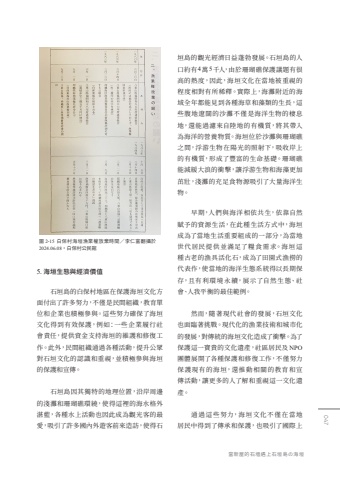 047%u7576%u65b0%u5c4b%u7684%u77f3%u586d%u9047%u4e0a%u77f3%u57a3%u5cf6%u306e%u6d77%u57a3%u5716 2-15 %u767d%u4fdd%u6751%u6d77%u57a3%u6f01%u696d%u6b0a%u653e%u68c4%u6642%u9593%uff0f%u674e%u4ec1%u5bcc%u7ffb%u651d%u65bc2024.06.08%uff0c%u767d%u4fdd%u6751%u516c%u6c11%u99285.%u0009%u6d77%u57a3%u751f%u614b%u8207%u7d93%u6fdf%u50f9%u503c%u77f3%u57a3%u5cf6%u7684%u767d%u4fdd%u6751%u5730%u5340%u5728%u4fdd%u8b77%u6d77%u57a3%u6587%u5316%u65b9%u9762%u4ed8%u51fa%u4e86%u8a31%u591a%u52aa%u529b%uff0c%u4e0d%u50c5%u662f%u6c11%u9593%u7d44%u7e54%uff0c%u6559%u80b2%u55ae%u4f4d%u548c%u4f01%u696d%u4e5f%u7a4d%u6975%u53c3%u8207%u3002%u9019%u4e9b%u52aa%u529b%u78ba%u4fdd%u4e86%u6d77%u57a3%u6587%u5316%u5f97%u5230%u6709%u6548%u4fdd%u8b77%uff0c%u4f8b%u5982%uff1a%u4e00%u4e9b%u4f01%u696d%u5c65%u884c%u793e%u6703%u8cac%u4efb%uff0c%u63d0%u4f9b%u8cc7%u91d1%u652f%u6301%u6d77%u57a3%u7684%u7dad%u8b77%u548c%u4fee%u5fa9%u5de5%u4f5c%u3002%u6b64%u5916%uff0c%u6c11%u9593%u7d44%u7e54%u901a%u904e%u5404%u7a2e%u6d3b%u52d5%uff0c%u63d0%u5347%u516c%u773e%u5c0d%u77f3%u57a3%u6587%u5316%u7684%u8a8d%u8b58%u548c%u91cd%u8996%uff0c%u4e26%u7a4d%u6975%u53c3%u8207%u6d77%u57a3%u7684%u4fdd%u8b77%u548c%u5ba3%u50b3%u3002%u77f3%u57a3%u5cf6%u56e0%u5176%u7368%u7279%u7684%u5730%u7406%u4f4d%u7f6e%uff0c%u6cbf%u5cb8%u5468%u908a%u7684%u6dfa%u7058%u548c%u73ca%u745a%u7901%u74b0%u7e5e%uff0c%u4f7f%u5f97%u9019%u88e1%u7684%u6d77%u6c34%u683c%u5916%u6e5b%u85cd%uff0c%u5404%u7a2e%u6c34%u4e0a%u6d3b%u52d5%u4e5f%u56e0%u6b64%u6210%u70ba%u89c0%u5149%u5ba2%u7684%u6700%u611b%uff0c%u5438%u5f15%u4e86%u8a31%u591a%u570b%u5167%u5916%u904a%u5ba2%u524d%u4f86%u9020%u8a2a%uff0c%u4f7f%u5f97%u77f3%u57a3%u5cf6%u7684%u89c0%u5149%u7d93%u6fdf%u65e5%u76ca%u84ec%u52c3%u767c%u5c55%u3002%u77f3%u57a3%u5cf6%u7684%u4eba%u53e3%u7d04%u67094%u842c5%u5343%u4eba%uff0c%u7531%u65bc%u73ca%u745a%u7901%u4fdd%u8b77%u8b70%u984c%u6709%u5f88%u9ad8%u7684%u71b1%u5ea6%uff0c%u56e0%u6b64%uff0c%u6d77%u57a3%u6587%u5316%u5728%u7576%u5730%u88ab%u91cd%u8996%u7684%u7a0b%u5ea6%u76f8%u5c0d%u6709%u6240%u7a00%u91cb%u3002%u5be6%u969b%u4e0a%uff0c%u6d77%u7058%u9644%u8fd1%u7684%u6d77%u57df%u5168%u5e74%u90fd%u80fd%u898b%u5230%u5404%u7a2e%u6d77%u8349%u548c%u85fb%u985e%u7684%u751f%u9577%uff0c%u9019%u4e9b%u8179%u5730%u907c%u95ca%u7684%u6c99%u7058%u4e0d%u50c5%u662f%u6d77%u6d0b%u751f%u7269%u7684%u68f2%u606f%u5730%uff0c%u9084%u80fd%u904e%u6ffe%u4f86%u81ea%u9678%u5730%u7684%u6709%u6a5f%u8cea%uff0c%u5c07%u5176%u5e36%u5165%u70ba%u6d77%u6d0b%u7684%u71df%u990a%u7269%u8cea%u3002%u6d77%u57a3%u4f4d%u65bc%u6c99%u7058%u8207%u73ca%u745a%u7901%u4e4b%u9593%uff0c%u6d6e%u6e38%u751f%u7269%u5728%u967d%u5149%u7684%u7167%u5c04%u4e0b%uff0c%u5438%u6536%u5cb8%u4e0a%u7684%u6709%u6a5f%u8cea%uff0c%u5f62%u6210%u4e86%u8c50%u5bcc%u7684%u751f%u547d%u57fa%u790e%u3002%u73ca%u745a%u7901%u80fd%u6e1b%u7de9%u5927%u6d6a%u7684%u885d%u64ca%uff0c%u8b93%u6d6e%u6e38%u751f%u7269%u548c%u6d77%u85fb%u66f4%u52a0%u8301%u58ef%uff0c%u6dfa%u7058%u7684%u5145%u8db3%u98df%u7269%u6e90%u5438%u5f15%u4e86%u5927%u91cf%u6d77%u6d0b%u751f%u7269%u3002%u65e9%u671f%uff0c%u4eba%u5011%u8207%u6d77%u6d0b%u76f8%u4f9d%u5171%u751f%uff0c%u4f9d%u9760%u81ea%u7136%u8ce6%u4e88%u7684%u8cc7%u6e90%u751f%u6d3b%uff0c%u5728%u6b64%u7a2e%u751f%u6d3b%u65b9%u5f0f%u4e2d%uff0c%u6d77%u57a3%u6210%u70ba%u4e86%u7576%u5730%u751f%u6d3b%u91cd%u8981%u7d44%u6210%u7684%u4e00%u90e8%u5206%uff0c%u70ba%u7576%u5730%u4e16%u4ee3 %u5c45%u6c11 %u63d0%u4f9b%u4e26%u6eff%u8db3%u4e86%u7ce7 %u98df %u9700%u6c42%u3002%u6d77 %u57a3 %u9019%u7a2e%u53e4%u8001%u7684%u6f01%u5177%u6d3b%u5316%u77f3%uff0c%u6210%u70ba%u4e86%u7530%u5712%u5f0f%u6f01%u6488%u7684%u4ee3%u8868%u4f5c%uff0c%u4f7f%u7576%u5730%u7684%u6d77%u6d0b%u751f%u614b%u7cfb%u7d71%u5f97%u4ee5%u9577%u671f%u4fdd%u5b58%uff0c%u4e14%u6709%u5229%u74b0 %u5883 %u6c38 %u7e8c%uff0c%u5c55%u793a%u4e86%u81ea%u7136%u751f%u614b%u3001%u793e%u6703%u3001%u4eba%u6211%u5e73%u8861%u7684%u6700%u4f73%u7bc4%u4f8b%u3002%u7136%u800c%uff0c%u96a8%u8457%u73fe%u4ee3%u793e%u6703%u7684%u767c%u5c55%uff0c%u77f3%u57a3%u6587%u5316%u4e5f%u9762%u81e8%u8457%u6311%u6230%u3002%u73fe%u4ee3%u5316%u7684%u6f01%u696d%u6280%u8853%u548c%u57ce%u5e02%u5316%u7684%u767c%u5c55%uff0c%u5c0d%u50b3%u7d71%u7684%u6d77%u57a3%u6587%u5316%u9020%u6210%u4e86%u885d%u64ca%u3002%u70ba%u4e86%u4fdd%u8b77%u9019%u4e00%u5bf6%u8cb4%u7684%u6587%u5316%u907a%u7522%uff0c%u793e%u5340%u5c45%u6c11%u53caNPO%u5718%u9ad4%u5c55%u958b%u4e86%u5404%u7a2e%u4fdd%u8b77%u548c%u4fee%u5fa9%u5de5%u4f5c%uff0c%u4e0d%u50c5%u52aa%u529b%u4fdd%u8b77%u73fe%u6709%u7684%u6d77 %u57a3%uff0c%u9084%u63a8 %u52d5%u76f8%u95dc%u7684%u6559%u80b2%u548c%u5ba3%u50b3%u6d3b%u52d5%uff0c%u8b93%u66f4%u591a%u7684%u4eba%u4e86%u89e3%u548c%u91cd%u8996%u9019%u4e00%u6587%u5316%u907a%u7522%u3002%u901a %u904e %u9019 %u4e9b%u52aa%u529b%uff0c%u6d77 %u57a3%u6587%u5316%u4e0d %u50c5 %u5728%u7576%u5730%u5c45%u6c11%u4e2d%u5f97%u5230%u4e86%u50b3%u627f%u548c%u4fdd%u8b77%uff0c%u4e5f%u5438%u5f15%u4e86%u570b%u969b%u4e0a