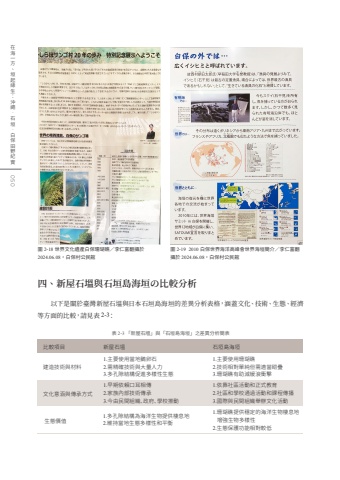 050%u5728%u6d77%u4e00%u65b9%u3001%u57a3%u8d77%u7de3%u751f%uff1a%u6c96%u7e69%u00b7%u77f3%u57a3%u00b7%u767d%u4fdd%u7530%u91ce%u7d00%u5be6%u5716 2-18 %u4e16%u754c%u6587%u5316%u907a%u7522%u767d%u4fdd%u73ca%u745a%u7901%uff0f%u674e%u4ec1%u5bcc%u7ffb%u651d%u65bc2024.06.08%uff0c%u767d%u4fdd%u6751%u516c%u6c11%u9928%u5716 2-19 2010 %u767d%u4fdd%u4e16%u754c%u6d77%u6d0b%u9ad8%u5cf0%u6703%u4e16%u754c%u6d77%u57a3%u7c21%u4ecb%uff0f%u674e%u4ec1%u5bcc%u7ffb%u651d%u65bc 2024.06.08%uff0c%u767d%u4fdd%u6751%u516c%u6c11%u9928%u56db%u3001%u65b0%u5c4b%u77f3%u586d%u8207%u77f3%u57a3%u5cf6%u6d77%u57a3%u306e%u6bd4%u8f03%u5206%u6790%u4ee5%u4e0b%u662f%u95dc%u65bc%u81fa%u7063%u65b0%u5c4b%u77f3%u586d%u8207%u65e5%u672c%u77f3%u57a3%u5cf6%u6d77%u57a3%u7684%u5dee%u7570%u5206%u6790%u8868%u683c%uff0c%u6db5%u84cb%u6587%u5316%u3001%u6280%u8853%u3001%u751f%u614b%u3001%u7d93%u6fdf%u7b49%u65b9%u9762%u7684%u6bd4%u8f03%uff0c%u8acb%u898b%u8868 2-3%uff1a%u8868 2-3 %u300c%u65b0%u5c4b%u77f3%u586d%u300d%u8207%u300c%u77f3%u57a3%u5cf6%u6d77%u57a3%u300d%u4e4b%u5dee%u7570%u5206%u6790%u7c21%u8868%u5efa%u9020%u6280%u8853%u8207%u6750%u65991.%u4e3b%u8981%u4f7f%u7528%u7576%u5730%u9d5d%u5375%u77f32.%u9700%u7cbe%u78ba%u6280%u8853%u8207%u5927%u91cf%u4eba%u529b3.%u591a%u5b54%u9699%u7d50%u69cb%u4fc3%u9032%u591a%u6a23%u6027%u751f%u614b%u6bd4%u8f03%u9805%u76ee %u65b0%u5c4b%u77f3%u586d %u77f3%u57a3%u5cf6%u6d77%u57a31.%u4e3b%u8981%u4f7f%u7528%u73ca%u745a%u7901 2.%u6280%u8853%u76f8%u5c0d%u55ae%u7d14%u4f46%u9700%u9069%u7576%u780c%u758a3.%u73ca%u745a%u7901%u6709%u52a9%u6e1b%u7de9%u6d6a%u885d%u64ca%u6587%u5316%u610f%u6db5%u8207%u50b3%u627f%u65b9%u5f0f1.%u65e9%u671f%u4f9d%u8cf4%u53e3%u8033%u76f8%u50b32.%u5bb6%u65cf%u5167%u90e8%u6280%u8853%u50b3%u627f3.%u4eca%u7531%u6c11%u9593%u7d44%u7e54%u3001%u653f%u5e9c%u3001%u5b78%u6821%u63a8%u52d51.%u4f9d%u9760%u793e%u5340%u6d3b%u52d5%u548c%u6b63%u5f0f%u6559%u80b22.%u793e%u5340%u548c%u5b78%u6821%u901a%u904e%u6d3b%u52d5%u548c%u8ab2%u7a0b%u50b3%u64ad3.%u570b%u969b%u8207%u6c11%u9593%u7d44%u7e54%u8209%u8fa6%u6587%u5316%u6d3b%u52d5%u751f%u614b%u50f9%u503c1.%u591a%u5b54%u9699%u7d50%u69cb%u70ba%u6d77%u6d0b%u751f%u7269%u63d0%u4f9b%u68f2%u606f%u57302.%u7dad%u6301%u7576%u5730%u751f%u614b%u591a%u6a23%u6027%u548c%u5e73%u88611.%u73ca%u745a%u7901%u63d0%u4f9b%u7a69%u5b9a%u7684%u6d77%u6d0b%u751f%u7269%u68f2%u606f%u5730%u589e%u5f37%u751f%u7269%u591a%u6a23%u60272.%u751f%u614b%u4fdd%u8b77%u529f%u80fd%u76f8%u5c0d%u8f03%u4f4e%u7d93%u6fdf%u89d2%u82721.%u6f01%u696d%u7d93%u6fdf%u50f9%u503c%u6e1b%u5c11 2.%u8f49%u5316%u70ba%u6587%u5316%u7d93%u6fdf 3.%u5438%u5f15%u904a%u5ba2%u4fc3%u9032%u6587%u5316%u65c5%u904a%u767c%u5c551.%u73ca%u745a%u7901%u6f01%u696d%u7522%u54c1%u548c%u65c5%u904a%u9805%u76ee%u53d6%u4ee3%u6d77%u57a3%u6587%u53162.%u65c5%u904a%u6d3b%u52d5%u6210%u70ba%u4e3b%u8981%u6536%u5165%u4f86%u6e90%u4fdd%u80b2%u8207%u767c%u5c55%u7b56%u75651.%u7522%u5b98%u5b78%u5408%u4f5c%u4fdd%u8b77 2.%u653f%u5e9c%u53c3%u8207%u8f03%u7a4d%u69753.%u793e%u5340%u7d44%u7e54%u63a8%u5ee3%u4fdd%u8b77%u5de5%u4f5c1.%u4f9d%u8cf4%u6c11%u9593%u7d44%u7e54%u548c%u4f01%u696d%u652f%u63012.%u653f%u5e9c%u53c3%u8207%u8f03%u88ab%u52d53.%u4f9d%u9760%u570b%u969b%u5408%u4f5c%u548c%u5b78%u6821%u53c3%u8207%u4fee%u5fa9%u5de5%u4f5c%u6559%u80b2%u8207%u50b3%u64ad 1.%u6ce8%u91cd%u5be6%u5730%u9ad4%u9a57%u8207%u50b3%u7d71%u6280%u8853%u6559%u5b78 2.%u74b0%u5883%u6559%u80b2%u5834%u6240%u3001%u8003%u5bdf%u3001%u5de5%u4f5c%u574a%u3001%u8ab2%u7a0b%u4ecb%u7d391.%u7d50%u5408%u73fe%u4ee3%u5a92%u9ad4%u548c%u79d1%u6280 2.%u901a%u904e%u5c55%u89bd%u3001%u6d3b%u52d5%u3001%u5831%u5c0e%u3001%u7d00%u9304%u7247%u3001%u66f8%u7c4d%u7b49%u591a%u5143%u5316%u50b3%u64ad