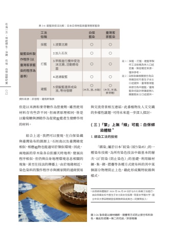%u8207%u4ea4%u6d41%u80cc%u666f%u76f8%u4e92%u9023%u7d50%u3002%u6b64%u756a%u690d%u7269%u53ca%u4eba%u6587%u4ea4%u7e54%u7684%u591a%u6a23%u6027%u8b70%u984c%uff0c%u53ef%u5f85%u672a%u4f86%u9032%u4e00%u6b65%u6df1%u5165%u63a2%u8a0e%u30021.%u0009%u7d81%u67d3%u5de5%u6cd5%u7684%u6280%u8853%u300c%u7d81%u67d3%u300d%u5c6c%u65bc%u65e5%u672c%u300c%u7d5e%u67d3%uff08%u7d5e%u308a%u67d3%u3081%uff09%u300d%u7684%u4e00%u7a2e%u67d3%u5e03%u6280%u8853%uff0c%u70ba%u6240%u6709%u67d3%u8272%u6280%u6cd5%u4e2d%u6700%u57fa%u672c%u7684%u5c64%u6b21%uff0c%u4ee5%u300c%u9632%u67d3%uff08%u9632%u6b62%u67d3%u8272%uff09%u300d%u7684%u57fa%u790e%uff0c%u5229%u7528%u7dda%u6750%u7d91%u3001%u7d2e%u3001%u7d81%u3001%u647a%u758a%u7b49%u5404%u7a2e%u65b9%u5f0f%u4f7f%u5e03%u6599%u7684%u5176%u4e2d%u67d0%u500b%u90e8%u5206%u7269%u7406%u9632%u6b62%u4e0a%u8272%uff0c%u85c9%u6b64%u5f62%u6210%u7368%u7279%u7d0b%u8def%u8207%u6a23%u5f0f%u3002%u5716 3-26 %u7d2e%u67d3%u662f%u4ee5%u7dda%u6750%u7d91%u7d81%u3001%u647a%u758a%u7b49%u65b9%u5f0f%u9632%u6b62%u90e8%u5206%u5e03%u6599%u67d3%u8272%uff0c%u85c9%u6b64%u5f62%u6210%u7368%u4e00%u7121%u4e8c%u7684%u82b1%u7d0b%uff0f%u8a31%u5bb9%u6995%u651d%u4f46%u662f%u4ee5%u7c73%u9152%u548c%u9ea5%u82bd%u7cd6%u4f5c%u70ba%u71df%u990a%u5291%u3002%u96d6%u7136%u4f7f%u7528%u6750%u6599%u5b58%u6709%u4e9b%u8a31%u4e0d%u540c%uff0c%u4f46%u5169%u8005%u539f%u7406%u76f8%u540c%uff0c%u7686%u662f%u4ee5%u8461%u8404%u7cd6%u8207%u9152%u7cbe%u4f5c%u70ba%u4fc3%u4f7f%u975b%u85cd%u7522%u751f%u767c%u9175%u4f5c%u7528%u7684%u6750%u6599%u3002%u7d9c%u5408%u4e0a%u8ff0%uff0c%u6211%u5011%u53ef%u4ee5%u767c%u73fe%uff0c%u5728%u767d%u4fdd%u67d3%u7e54%u8207%u81fa%u7063%u67d3%u5e03%u7684%u6df5%u6e90%u4e0a%uff0c%u77f3%u57a3%u5cf6%u4ee5%u53ca%u81fa%u7063%u7def%u5ea6%u76f8%u4f3c%uff0c%u76f8%u61c9%u690d%u7269%u4e5f%u80fd%u9069%u5207%u65bc%u985e%u4f3c%u74b0%u5883%u3002%u56e0%u6b64%uff0c%u5169%u5730%u5340%u7684%u8349%u6728%u67d3%u5404%u81ea%u4f9d%u64da%u5929%u6642%u5730%u5229%uff0c%u767c%u5c55%u51fa%u7a0b%u5e8f%u76f8%u4f3c%u3001%u4f46%u4ecd%u8207%u81ea%u8eab%u5730%u7406%u74b0%u5883%u606f%u606f%u76f8%u95dc%u7684%u73fe%u8c61%uff0c%u751a%u81f3%u5728%u6280%u6cd5%u7684%u50b3%u64ad%u4e0a%uff0c%u7531%u65bc%u5730%u7de3%u76f8%u8fd1%uff0c%u67d3%u8272%u67d3%u6599%u7684%u88fd%u4f5c%u7a0b%u5e8f%u4ea6%u8207%u570b%u5bb6%u9593%u7684%u901a%u5546%u8cbf%u6613%u8868 3-4 %u975b%u85cd%u67d3%u6280%u6cd5%u6bd4%u8f03%uff1a%u65e5%u672c%u767d%u4fdd%u5730%u5340%u8207%u81fa%u7063%u5ba2%u5bb6%u85cd%u67d3( %u4e09 )%u300c%u7e6b%u300d%u4e0a%u7121%u300c%u7dda%u300d%u53ef%u80fd%uff1a%u767d%u4fdd%u7d81%u67d3%u9ad4%u9a57 99 %u767d%u4fdd%u7d81%u67d3%u9ad4%u9a57%u65bc 2024 %u5e74 06 %u6708 09 %u65e5%u65bc%u306a%u308f%u305f%u67d3%u7e54%u5de5%u574a%u9032%u884c%uff0c%u7531%u767d%u4fdd%u7e54%u53cb%u677e%u7af9%u559c%u751f%u5b50%u5973%u58eb%u8207%u5973%u5152%u6307%u5c0e%uff0c%u7b51%u7d2b%u5973%u5b66%u5712%u5927%u5b66%u3001%u570b%u7acb%u4e2d%u592e%u5927%u5b78%u7530%u91ce%u8abf%u67e5%u6307%u5c0e%u6559%u5e2b%u8207%u6210%u54e1%u4e5f%u4e00%u540c%u5be6%u969b%u6295%u5165%u3002072%u5728%u6d77%u4e00%u65b9%u3001%u57a3%u8d77%u7de3%u751f%uff1a%u6c96%u7e69%u00b7%u77f3%u57a3%u00b7%u767d%u4fdd%u7530%u91ce%u7d00%u5be6%u8cc7%u6599%u4f86%u6e90%uff1a%u8a31%u5bb9%u6995%u3001%u937e%u4f91%u8ed2%u88fd%u8868%u8a3b 1%uff1a%u63a1%u85cd%u3001%u6253%u85cd%u3001%u5efa%u85cd%u7b49%u88fd%u4f5c%u5de5%u6cd5%u4fd7%u7a31%u70ba%u4e16%u4eba%u53e3%u8ff0%u5b9a%u7fa9%uff0c%u7121%u5f9e%u78ba%u5b9a%u4f86%u6e90%uff0c%u50c5%u4f9b%u53c3%u8003%u3002%u8a3b 2%uff1a%u767d%u4fdd%u67d3%u7e54%u76f8%u95dc%u90e8%u5206%u70ba%u767d%u4fdd%u7e54%u53cb%u677e%u7af9%u559c%u751f%u5b50%u5973%u58eb%u53e3%u8ff0%u63d0%u4f9b%uff0c%u81fa%u7063%u5ba2%u5bb6%u85cd%u67d3%u90e8%u5206%u70ba%u4e2d%u570b%u85cd%uff0f%u81fa%u7063%u85cd%u67d3%u574a%u8a2d%u8a08%u5e2b%u517c%u5275%u8fa6%u4eba%u9b4f%u7c64%u61ff%u5973%u58eb%u53e3%u8ff0%u63d0%u4f9b%u3002%u81fa%u7063%u5ba2%u5bb6%u85cd%u67d3%u767d%u4fdd%u85cd%u67d3%u63a1%u85cd 1.%u6d78%u8449%u6c88%u6fb1%u6253%u85cd%u5efa%u85cd2.%u52a0%u5165%u77f3%u70704.%u904e%u6ffe%u975b%u85cd%u3007%u3007%u3007%u3007%u3007%u3007%u3007%u3007%u3007%u3007%u5de5%u6cd5%u4fd7%u7a31%u975b%u85cd%u67d3%u6599%u88fd%u4f5c%u7a0b%u5e8f%uff08%u4ee5%u81fa%u7063%u5ba2%u5bb6%u85cd%u67d3%u7684%u7a0b%u5e8f%u70ba%u57fa%u6e96%uff093.%u65e9%u665a%u9032%u884c%u652a%u62cc%u4f7f%u6ce1%u6cab%u6c88%u6fb1%u3001%u6d3b%u52d5%u9175%u6bcd%u83cc5.%u4f7f%u975b%u85cd%u9084%u539f%u6210%u67d3%u6db2%uff0c%u7b49%u5f85%u767c%u9175 %uff08%u6728%u7070%u3001%u9152%u3001%u6c34%u98f4%uff09%uff08%u6728%u7070%u3001%u7c73%u9152%u3001%u9ea5%u82bd%u7cd6%uff09